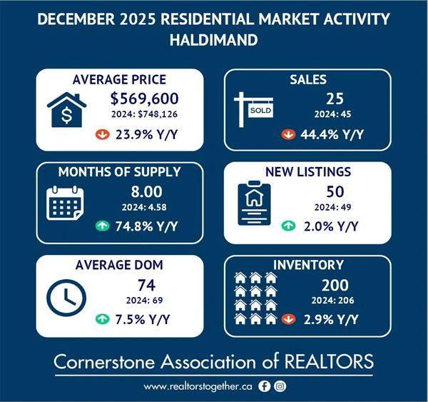 Hamilton, ON (January 6, 2026) — In December, home sales reported through the MLS® System of the Cornerstone Association of REALTORS® (Cornerstone) slowed across Hamilton, Burlington, Haldimand County, and Niagara North. This led to a 12% drop for the year. There were 8,996 sales in total across the region, making it the slowest year since 2010 and more than 30% below long-term averages.